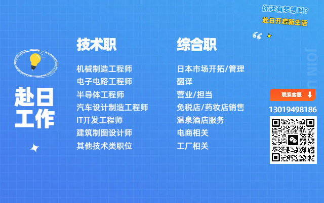 嚴海赴日(workinjapan.cn)是專業的赴日工作服務平臺,是大連嚴海人力資源有限公司旗下品牌。主要提供日本就職(工作簽)/日本留學(半工半讀),等最新工作信息和資訊,為想赴日工作的小伙伴們提供專業的、一對一的咨詢,為您職業生涯規劃、永居辦理、在日期間換職、轉換簽證等方面提供支援。